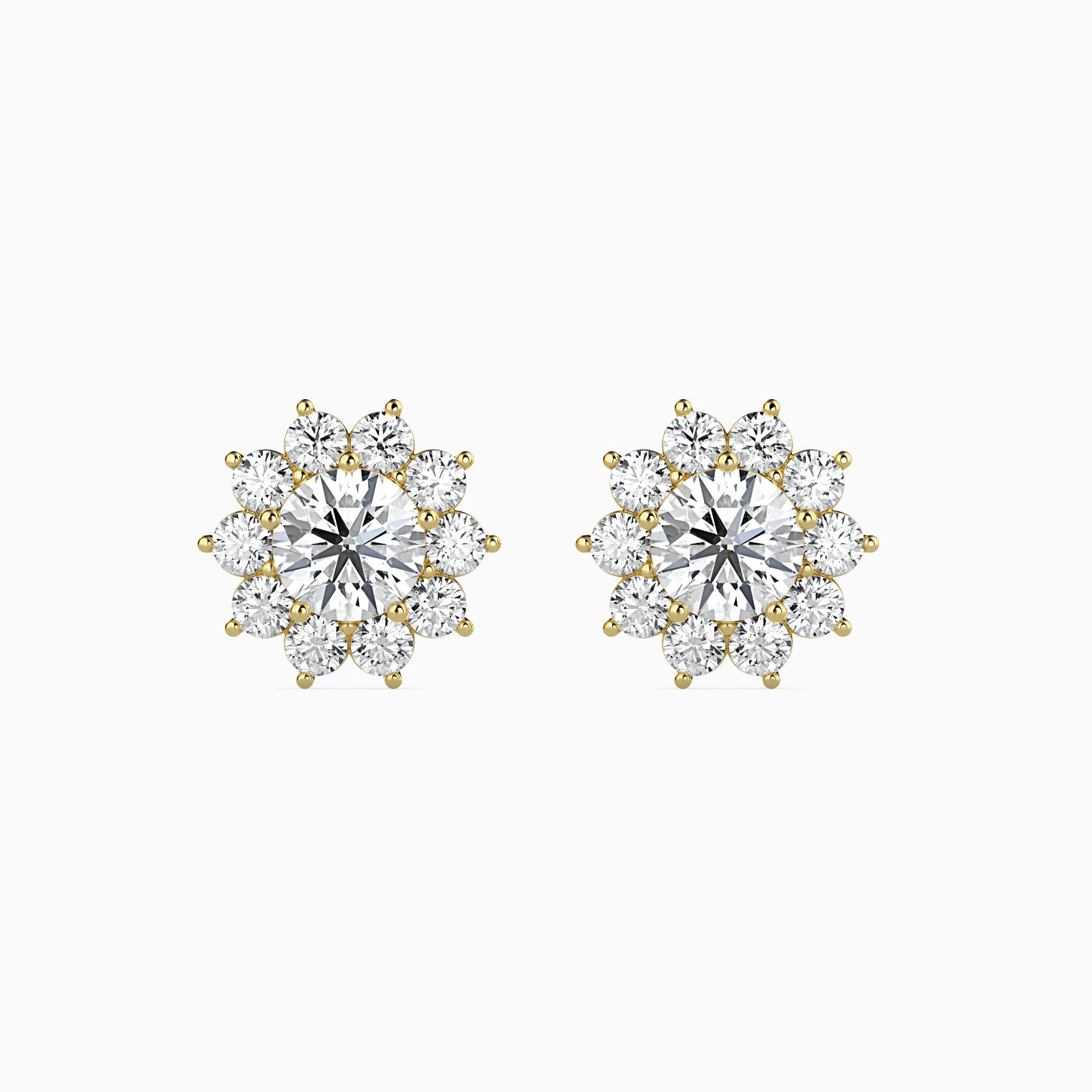 A radiant symbol of elegance and purity, the Padma Sundari Diamond Stud Earrings draw inspiration from the sacred lotus (Padma), celebrated in Indian tradition as a sign of divine beauty, grace, and rarity. Crafted in 18K yellow gold and encircled with premium brilliant-cut diamonds, these earrings embody the charm of a blooming lotus in full glory — eternal, rare, and graceful.